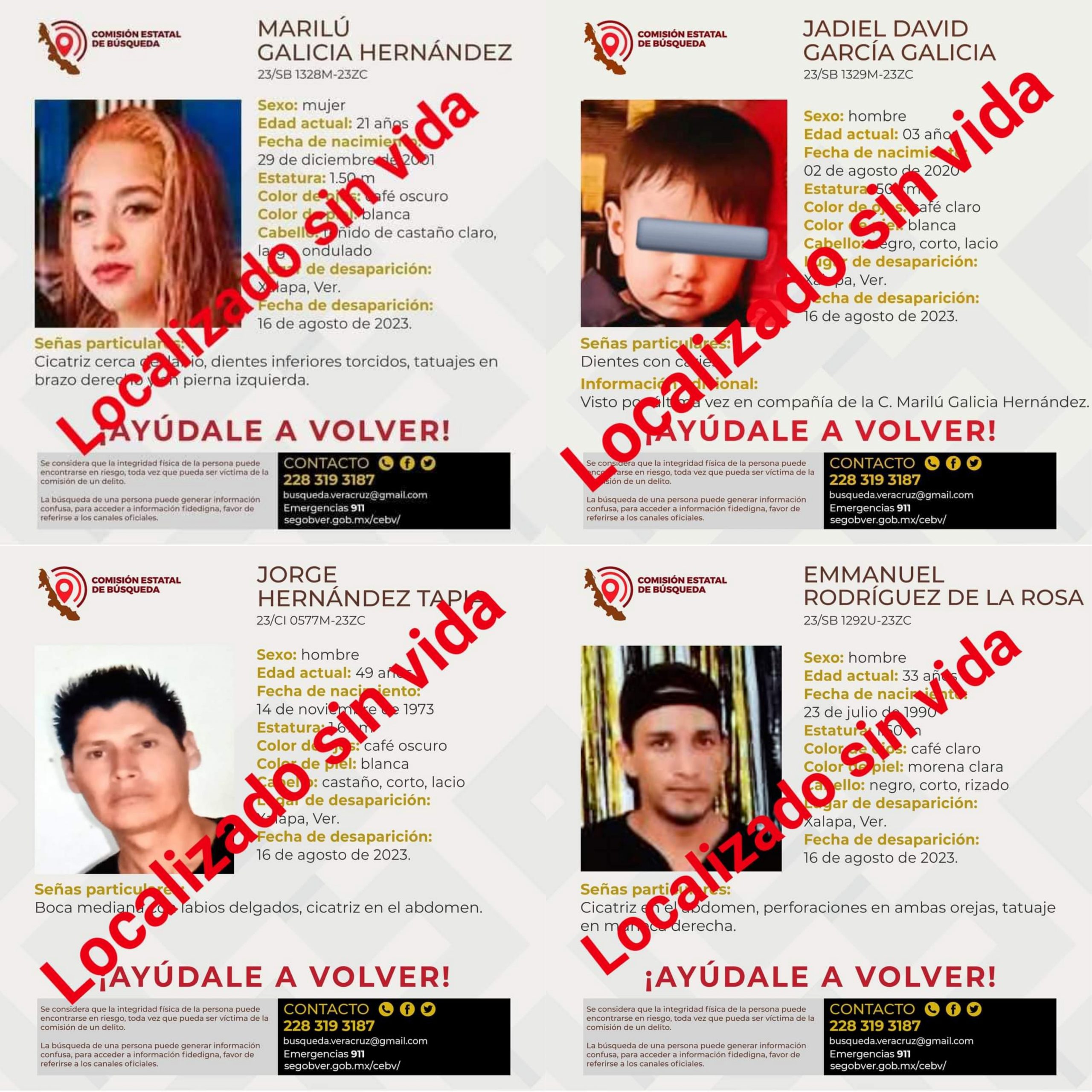 Los otros dos cuerpos fueron idéntificados cómo Jorge N de 49 años de edad y Emmanuel N de 33 años de edad quienes también fueron reportados como desparecidos el pasado 16 de agosto al momento se desconoce si tienen algún vínculo.
