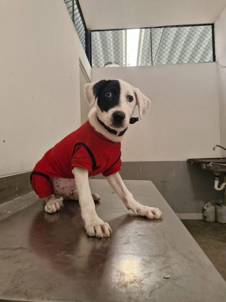«Recibimos un reporte que en colonia la Antorcha, en redes sociales se dio a conocer acerca de maltrato a un perrito, por lo que personal del CBA acudió a realizar la visita de verificación y encontramos a Max un perrito de tres meses de edad, el cual fue rescatado de los cañales por una familia, que de acuerdo a sus posibilidades le dio un hogar», relató la responsable del CBA.