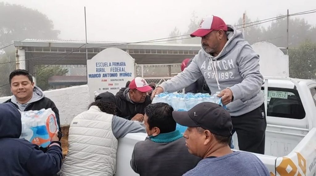 Agua embotellada y despensas fueron entregados a los pobladores por MCM, quienes se organizaron para llevarlos personalmente y externarles su solidaridad en estos momentos tan difíciles.