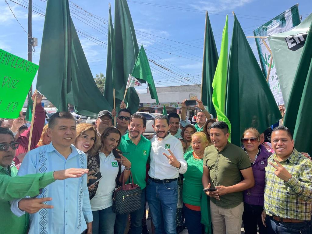 Entre los gritos y las porras destacó la presencia de militantes y simpatizantes del Partido Verde Ecologista de México en Córdoba. En el presídium el líder estatal Carlos Marcelo Ruiz Sánchez y en la porra, en voz de la señora Rosa Quevedo Méndez, presidenta de la Asociación La causa de los artesanos, la síndica del Ayuntamiento de Córdoba, Vania López González. Presente el alcalde Juan Martínez Flores.
