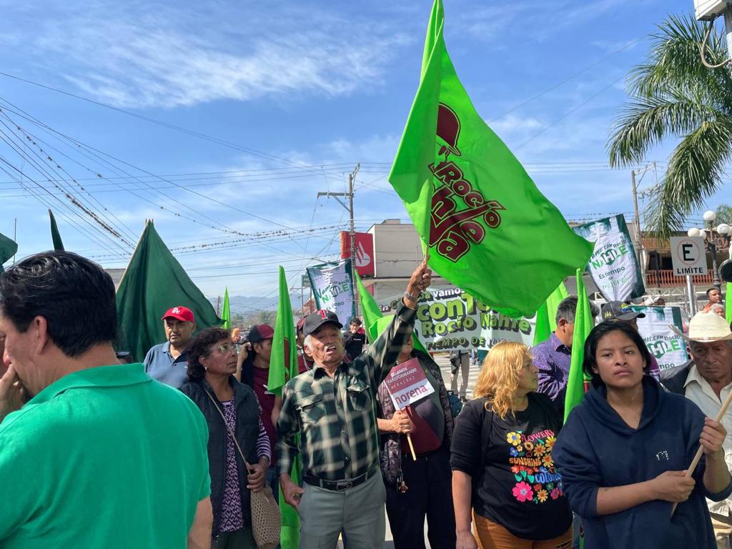 “En Rocío sí confío”, grita otra mujer que carga una pancarta con esa consigna. Los hombres también se emocionan y le piden fotos. “Será la primer mujer gobernadora de Veracruz”, grita el maestro de ceremonias al pedir que todos levanten sus banderines para recibirla al llegar al presídium. Presentes, los líderes de MORENA, Esteban Ramírez Zepeta; Vicente Aguilar Aguilar, del PT, y Eduardo Vega Yunes, de Fuerza por México. También, los alcaldes de la región y legisladores y legisladoras.