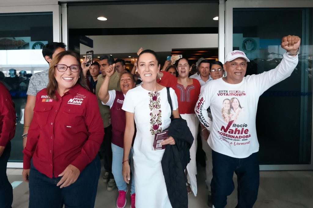 Nahle García recibió a Sheinbaum Pardo en el aeropuerto internacional de Veracruz para después trasladarse a Xalapa para ambas, encabezar este gran encuentro con la ciudadanía y simpatizantes de todo el estado de Veracruz que se decantaron por este proyecto de nación al que ya nadie detiene.