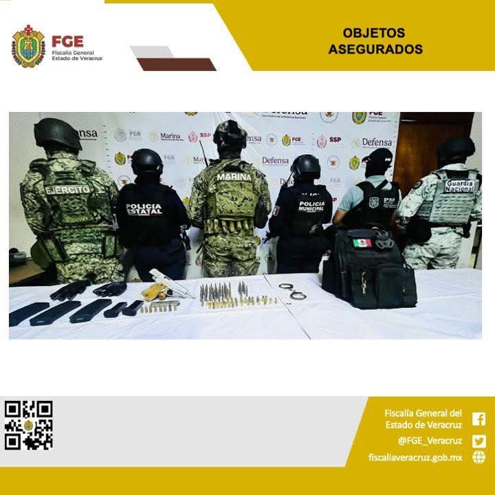 En dicho operativo se aseguraron cartuchos y cargadores balísticos, un arma de fuego, guantes, esposas y un chaleco táctico.