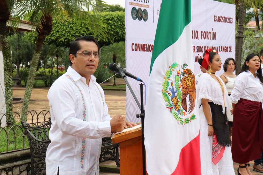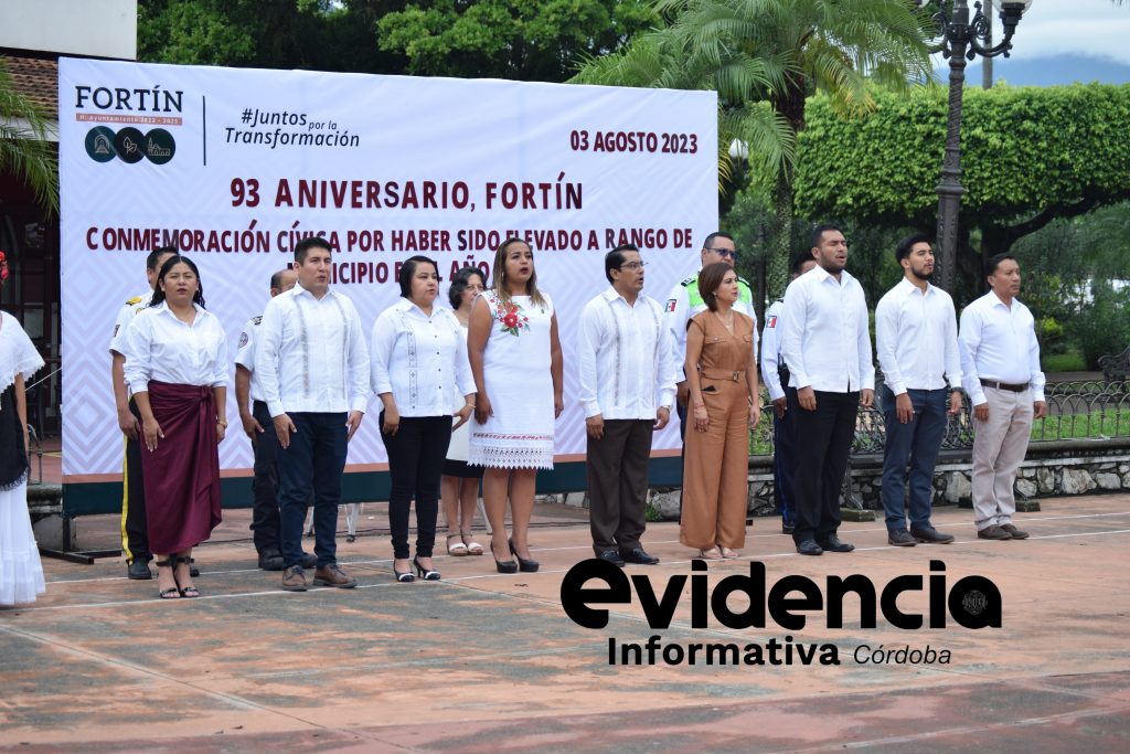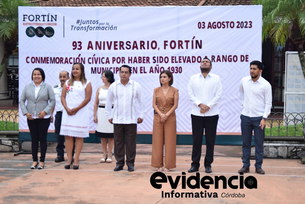 Fortín, Ver. – “Hoy el ciudadano reclama la atención que por muchos años ha quedado en el olvido, muchos hombres y mujeres a través de la historia han forjado este municipio, es obligación de nosotros respaldar ese legado con acciones coherentes y propias de nuestras acciones”, refirió el presidente municipal Gerardo Rosales Victoria como mensaje a la conmemoración del 93 aniversario de Fundación de Fortín como municipio Libre.