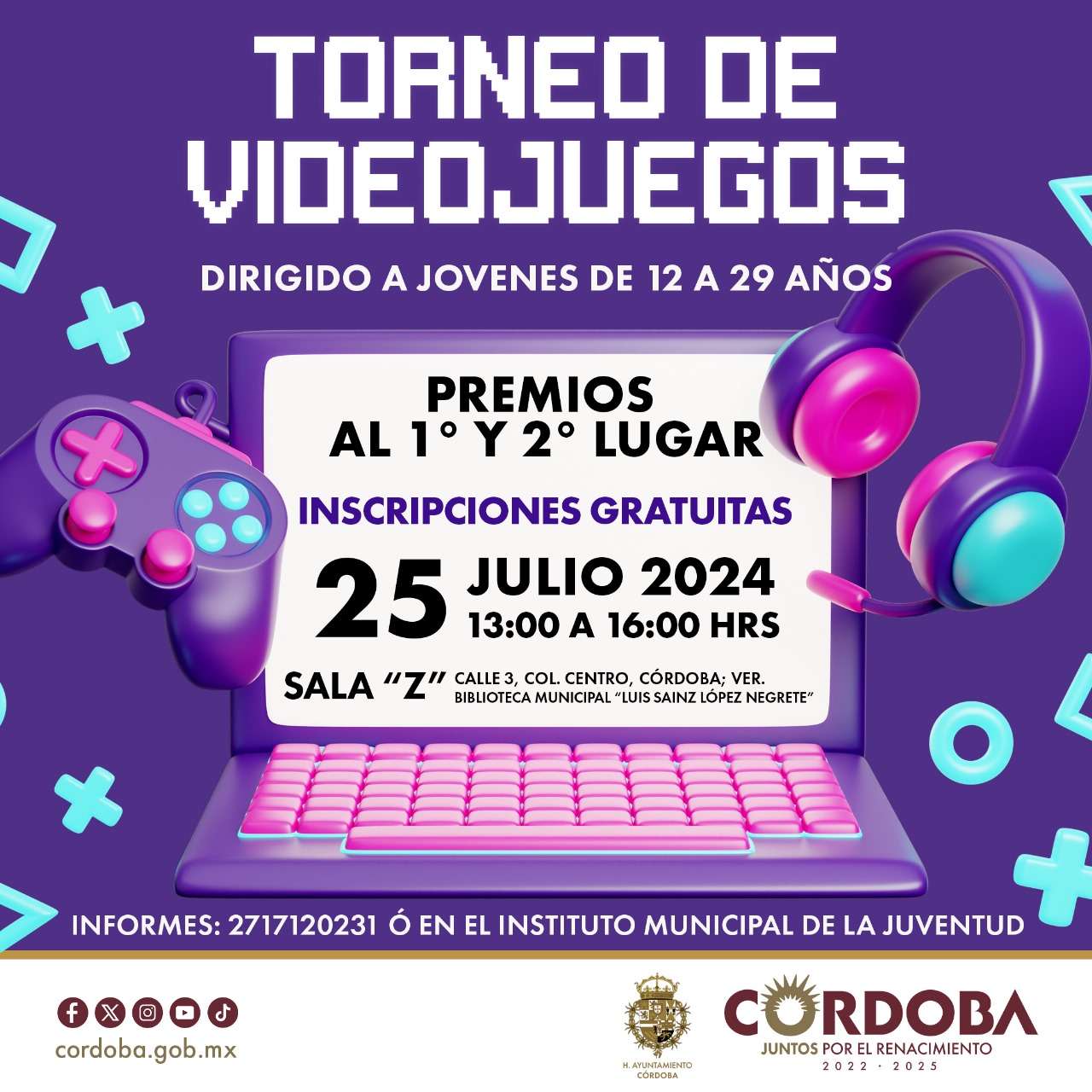 H. Córdoba Ver. 19 de julio de 2024.- El ayuntamiento de Córdoba a través del Instituto Municipal de la Juventud, realizará un Torneo de Videojuegos el próximo 25 de julio, informo Valeria Alarcón Martínez de la Muria directora del IMJUVE.