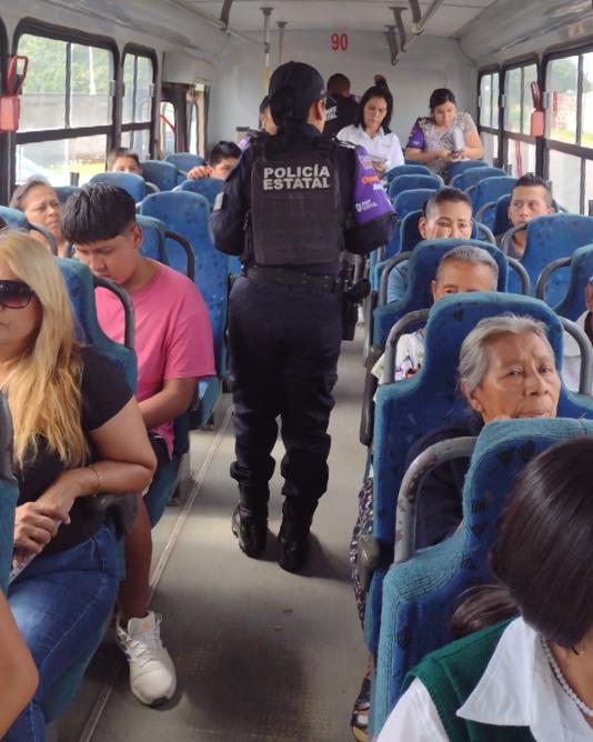 La titular del área, Rocío González Ortega, informó que a partir de esta semana se retomarán diversas acciones, entre ellos este programa que ya se ha puesto en marcha, para el cual, personal del área, así como policías estatales abordaron a mujeres y usuarios, a quienes se les dio a conocer los tipos de violencia que existen, con la finalidad de que puedan identificar si viven alguna situación similar, y se les invitó a acudir a las oficinas del Instituto para ser apoyadas.