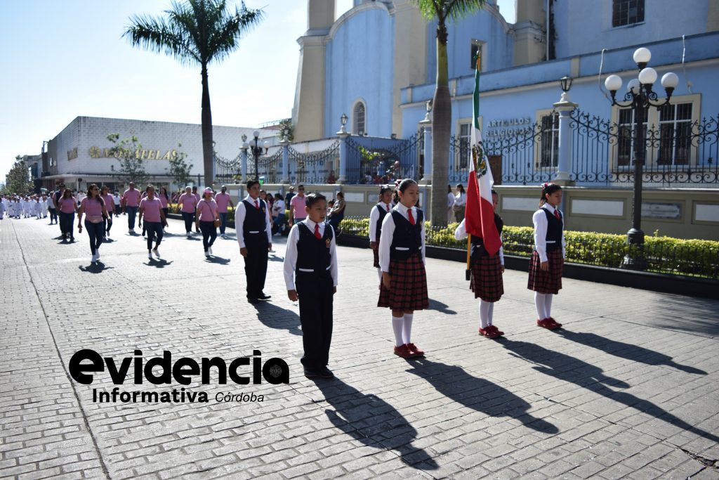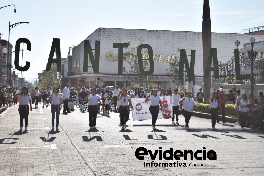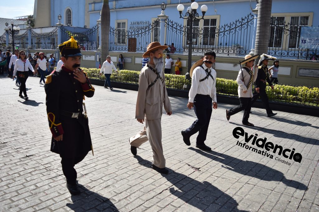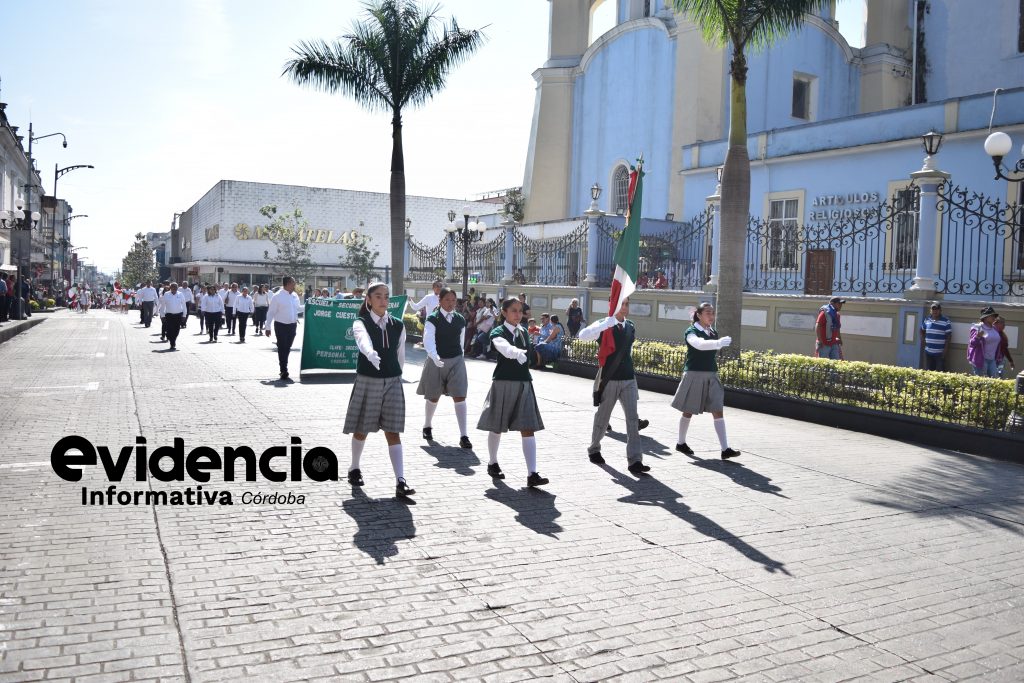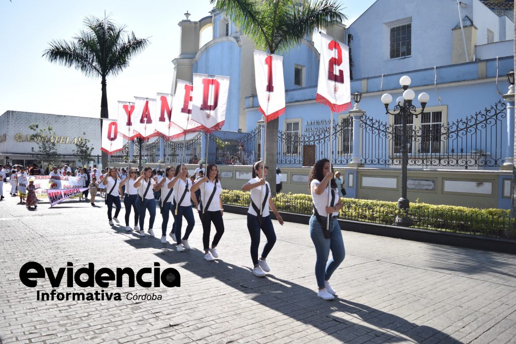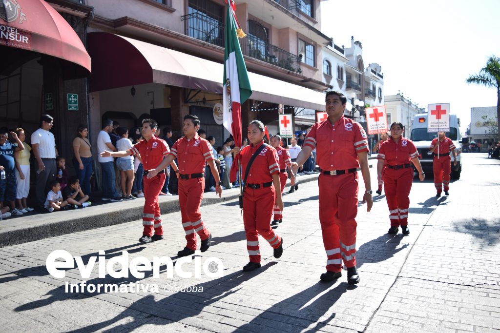 Durante este lunes, el desfile inició con la participación de la Banda de Música Municipal, autoridades municipales, seguidas de los contingentes de la corporaciones de auxilio por Protección Civil, Cruz Roja y Bomberos. Posteriormente, comenzó la participación de los grupos especiales Club Gallos de Córdoba Fútbol Down A. C. y el equipo Deportivo Córdoba Tiburones.