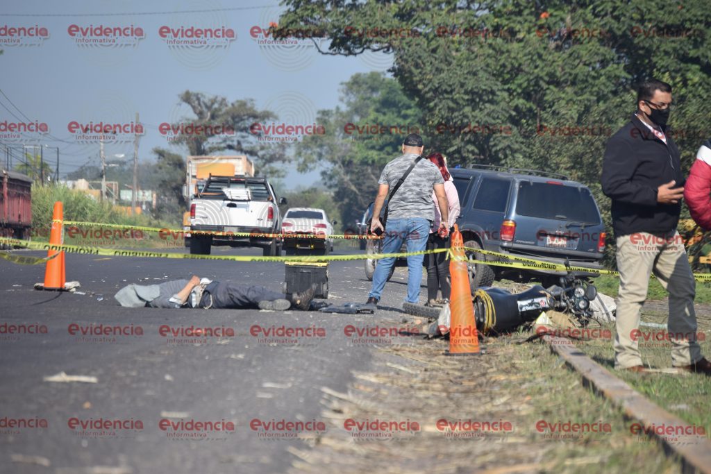 El ahora finado fue identificado como Timoteo Juárez Flores, de alrededor de 60 años, con domicilio en la localidad de Mesillas, de Yanga, quien perdió la vida debido a que salió proyectado cayendo al pavimento lo que ocasionó que falleciera al instante tras no portar casco de seguridad.
