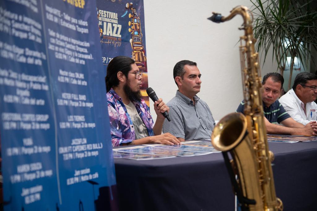 Por su parte, Luis Calatayud Ortíz, organizador del evento, presentó la cartelera que inicia el viernes 1 de septiembre con la exposición “Somos Jazz” que integra artistas plásticos de la región. A las 18:00 horas estará el taller de pintura e improvisación con Octavio Sánchez Oropeza en la Calle del Arte, asimismo el sábado y domingo a las 12:00 horas en el parque San José y Calle del Arte.