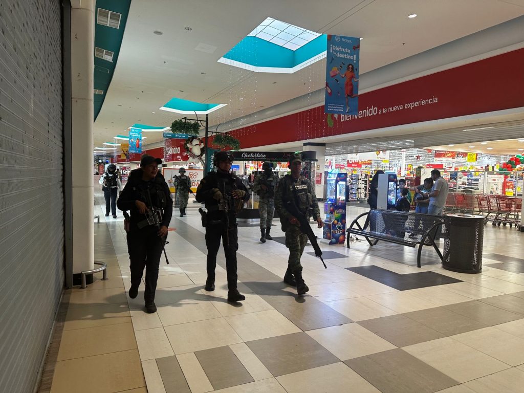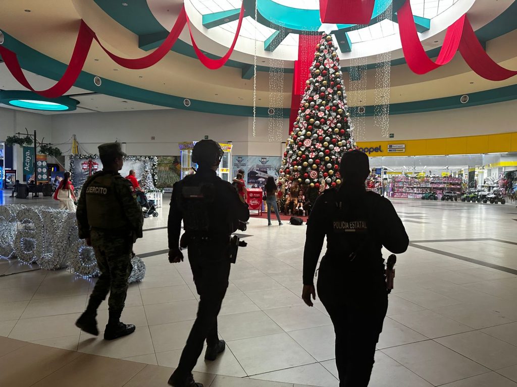 Xalapa, Ver., 28 de diciembre de 2023.- Efectivos de la Secretaría de Seguridad Pública (SSP), a través de Policía Estatal, en coordinación con elementos de la SEDENA y Policía Vial mantienen el esquema preventivo mediante recorridos al interior y exterior de plazas comerciales, además de implementar filtros de inspección aleatorios en Coatzacoalcos.