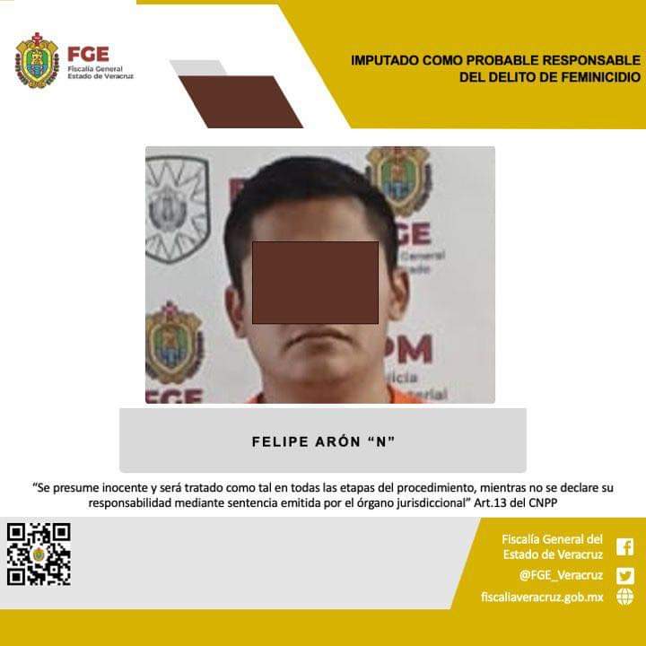 Veracruz, Ver., a 29 de noviembre del 2024.-La Fiscalía General del Estado, a través de la Fiscalía Especializada en Investigación de Delitos de Violencia Contra la Familia, Mujeres, Niñas y Niños y de Trata de Personas, realizó imputación en contra de Felipe Arón “N”, como probable responsable del delito de feminicidio, cometido en agravio de la víctima identificada con las iniciales M.C.C.