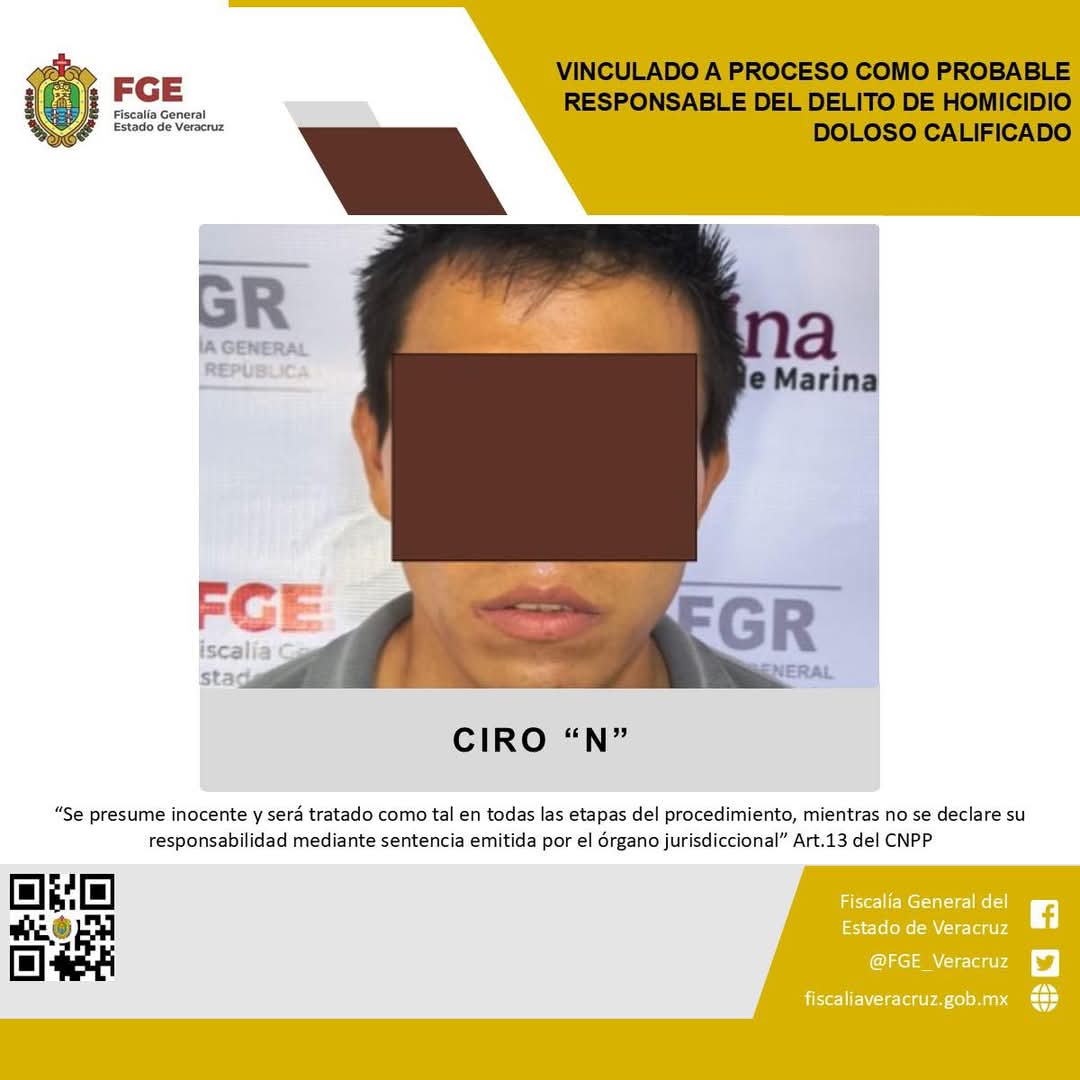 Martínez de la Torre, Ver., 20 de marzo del 2025.-La Fiscalía General del Estado, a través de la Fiscalía Regional Xalapa obtuvo vinculación a proceso en contra de Ciro “N” como probable responsable del delito de homicidio doloso calificado, cometido en agravio de la víctima J.D.D.F.