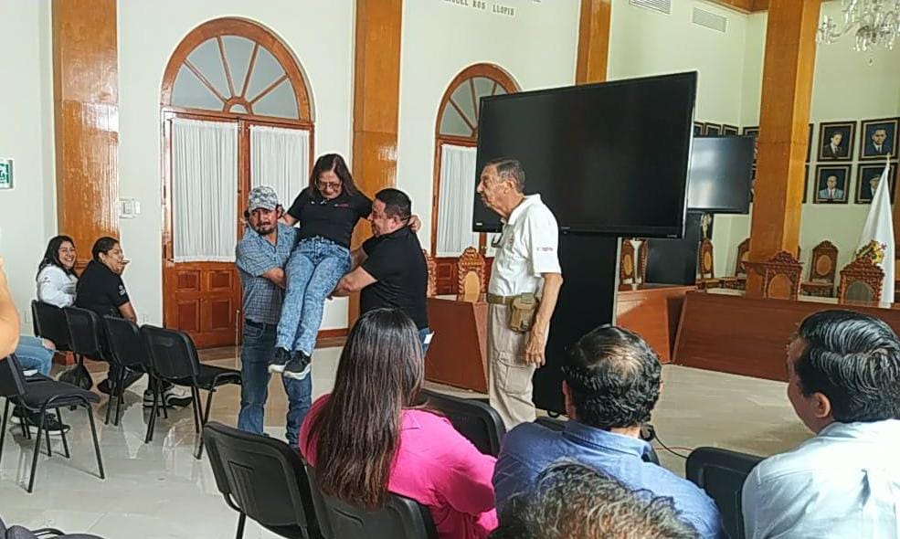 José Jorge Tress Martínez titular de esa área, afirmó que estas acciones son previas al simulacro, recordándoles los protocolos de evacuación, así como también hubo material teórico y se desarrollaron prácticas en este evento que se efectuó en el salón central de Palacio Municipal.
