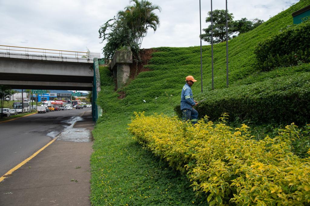 Por parte del área de Parques y Jardines, personal realiza trabajos de poda en la zona de las jardineras y camellones, como parte de un trabajo integral y del embellecimiento de la entrada a la ciudad.