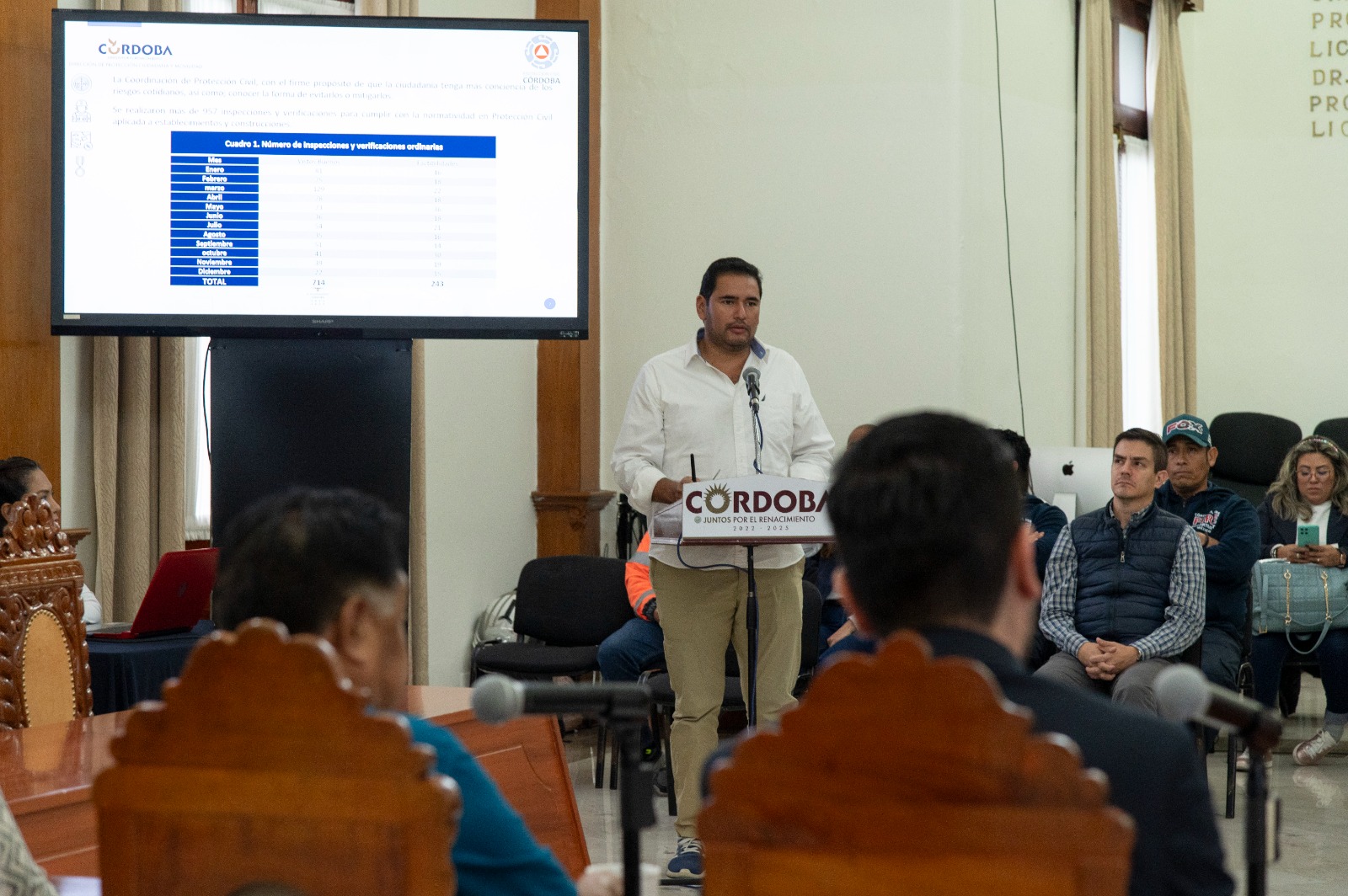 Córdoba, Ver. 31 de enero de 2024. – El presidente Juan Martínez Flores reconoció la labor del personal de la Unidad Municipal de Protección Civil quienes de manera coordinada con los grupos de emergencia y corporaciones de auxilio y rescate atienden ante cualquier contingencia, dijo al encabezar la sesión permanente del Consejo Municipal de Protección Civil.