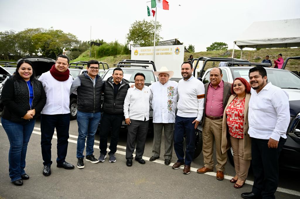 Emiliano Zapata, Ver., 16 de enero de 2024. – Este martes, el Presidente Juan Martínez Flores, acudió a la entrega de vehículos y equipamiento táctico para los municipios de Veracruz, donde el Gobernador del Estado, Cuitláhuac García Jiménez, destinó a la ciudad de Córdoba, dos patrullas, una motocicleta y cinco chalecos con dos placas balísticas, dando cumplimiento a la política de transformación a las policías municipales en materia de seguridad pública.