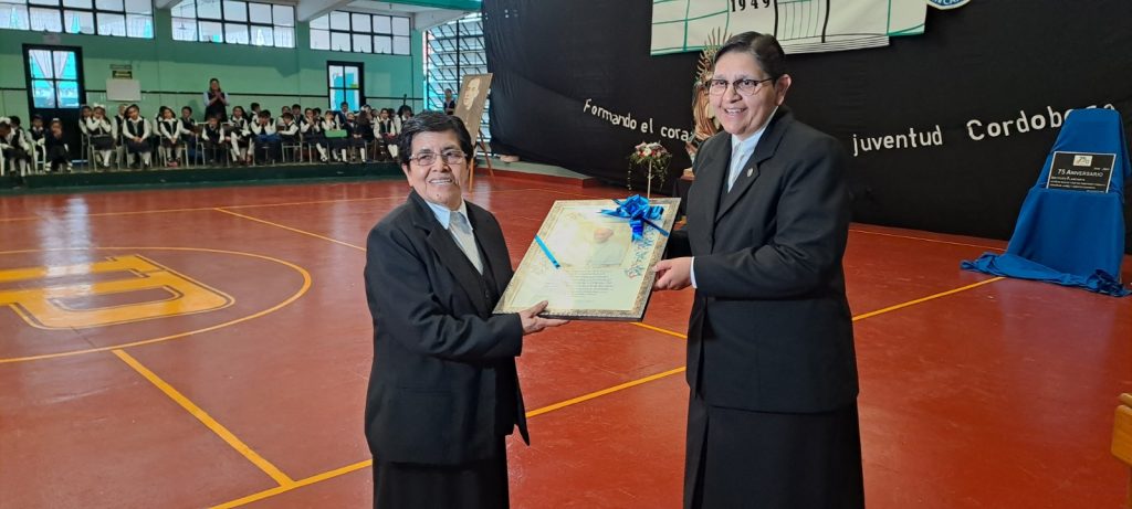 Córdoba, Ver.- El Papa Francisco envió su bendición apostólica a la comunidad religiosa y educativa del Instituto Plancarte de Córdoba, por sus 75 años de fundación, entregada por la Madre Elva Guadalupe Ruiz Bueno, Superiora General de la Congregación de las Hijas de María Inmaculada de Guadalupe (HMIG), a la madre superiora del plantel, Nora Rodríguez Pineda.