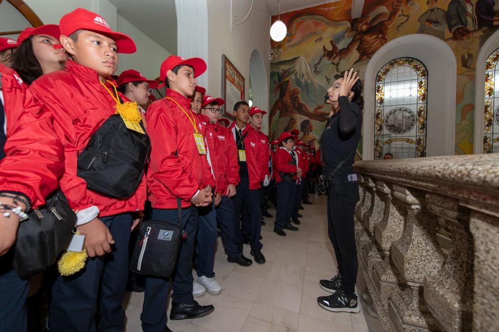 El personal de la Coordinación de Turismo, brindó a los estudiantes un recorrido por el Palacio Municipal en donde pudieron conocer el mural “Córdoba para Siempre” que relata la historia de la ciudad desde los primeros vestigios en la zona arqueológica de Toxpan, hasta de las leyendas como La Mulata, la batalla del 21 de mayo, entre otros; además del Salón Central, donde se encuentran los nombres en letras de oro de los “Cordobeses Ilustres”, y el Archivo Municipal, donde conocieron el documento de los Tratados de Córdoba.