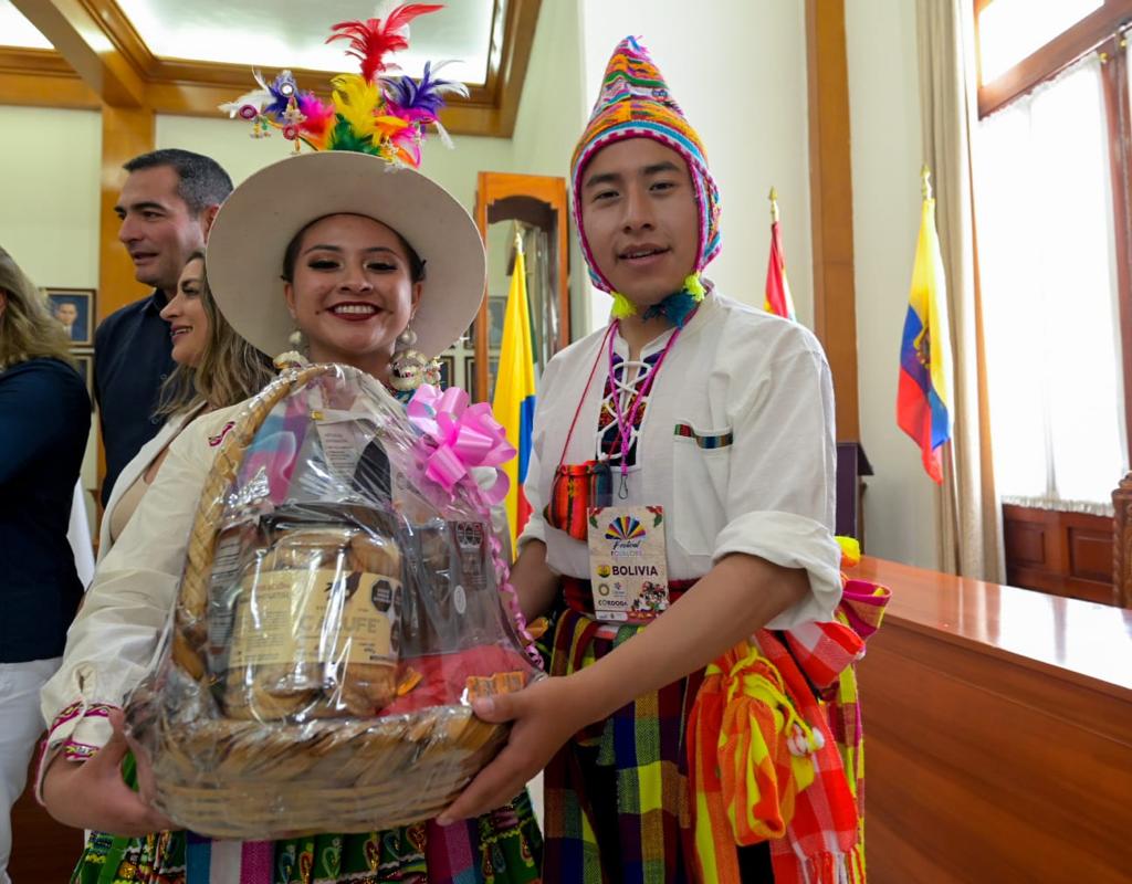 Posteriormente, cada una de las delegaciones hizo la entrega a las autoridades municipales de obsequios con productos de su lugar de origen, mientras que, los representantes de los países invitados recibieron una canasta con artículos derivados del café, como producto distintivo de la ciudad de los 30 Caballeros.