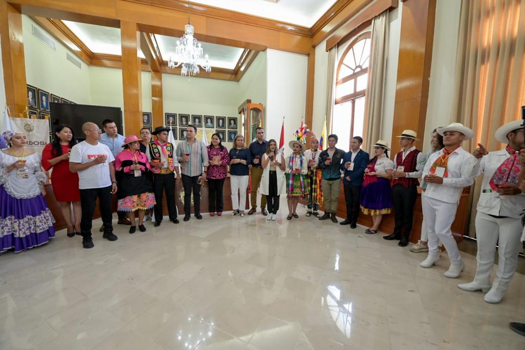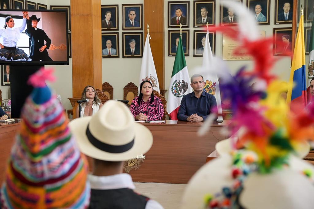 Córdoba, Ver., (02 de agosto de 2023).- Este miércoles, integrantes del Cabildo encabezados por la Síndica, Vania López González y ediles, recibieron a las delegaciones de Ecuador, Perú, Colombia y Bolivia, además de las nacionales de Oaxaca, Ciudad de México, Guerrero y Estado de México, que participan en el 7° Festival Internacional del Folklore.