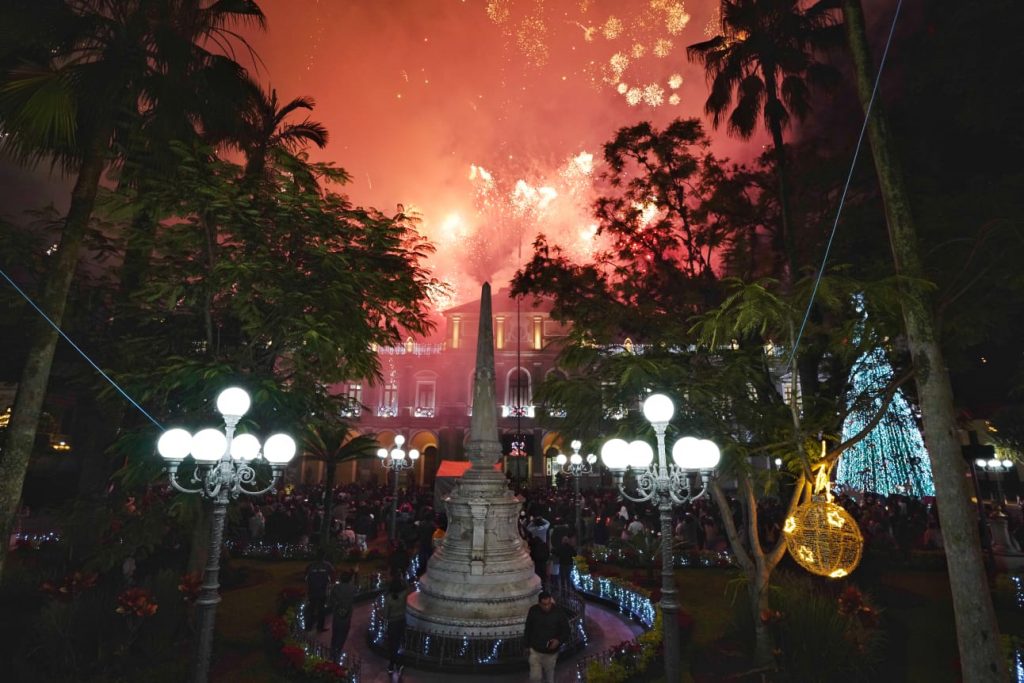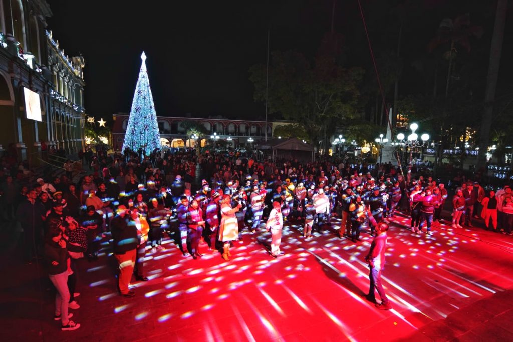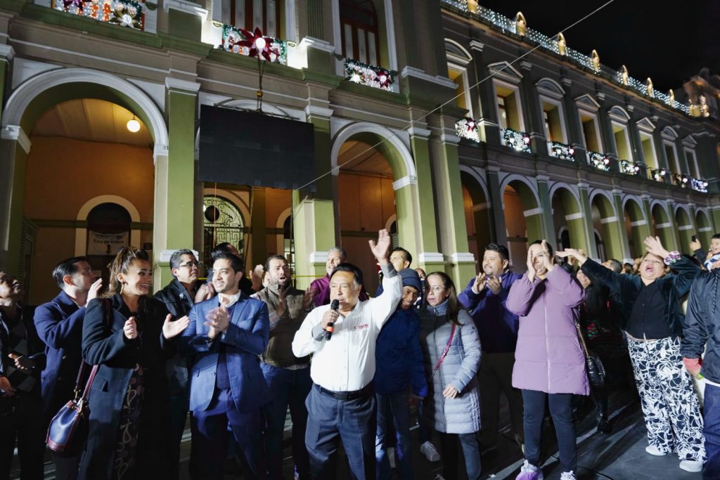El presidente Juan Martínez Flores acompañado de autoridades municipales realizaron el conteo regresivo que dirigió ante las familias congregadas en la explanada del parque 21 de mayo para recibir este año nuevo y disfrutar de la pirotecnia que ilumino la fachada del Palacio municipal durante seis minutos.