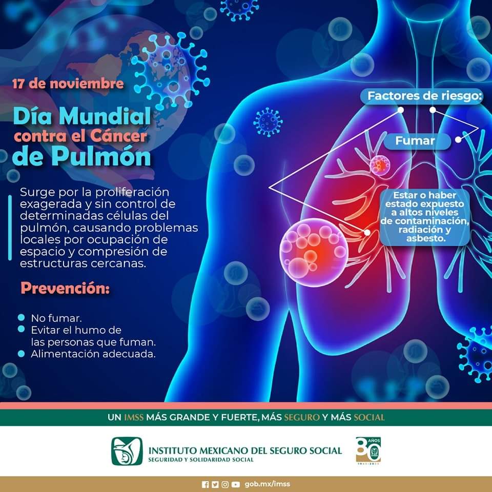 En el marco del Día Internacional de la Lucha contra el Cáncer de Pulmón, el Instituto Mexicano del Seguro Social (IMSS) en Veracruz Sur invita a la población a reducir y evitar el consumo de cigarros y la exposición al humo para prevenir el desarrollo de cáncer de pulmón, una de las principales enfermedades que causan la muerte en todo el mundo.