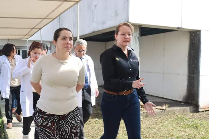 Acompañada de la Directora de Infraestructura de Salud de SESVER, Arq. Karla Peregrina Bermúdez y de su equipo; así como de directivos y trabajadores de la salud, recorrieron el actual hospital de salud mental y las diferentes áreas del nuevo hospital que albergará toda estructura de recurso humano y pacientes en espacios amplios y totalmente renovados.