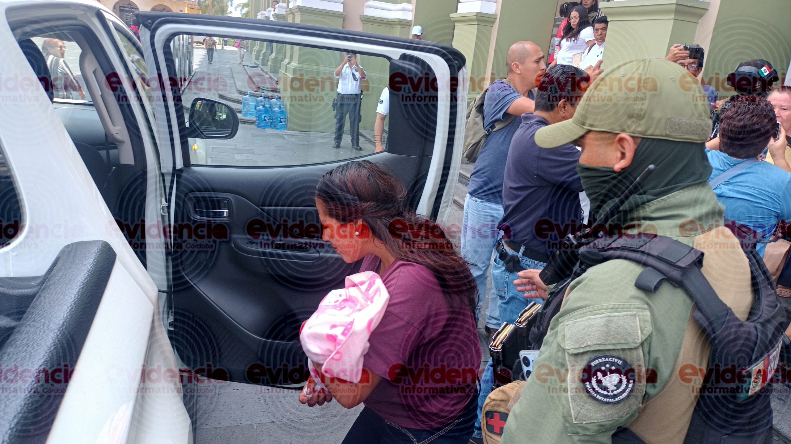 Acompaña de Norma Romero coordinadora de Las Patronas llegaron la madre de la bebé y otra niña de 3 años de edad al palacio municipal de Córdoba apoyados por personal del Instituto Nacional de Migración y Fuerza Civil.