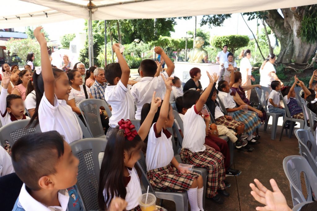 Durante este significativo evento estuvo presente el Secretario del Ayuntamiento, Osmar Eduardo Martínez en representación del presidente municipal, Gerardo Rosales Victoria, la directora del DIF, Trinidad Puentes Esquivel y la coordinadora de Educación y Cultura, Miriam Flores Gutiérrez, así como los alumnos del CAIC Centro, padres de familia y vecinos.