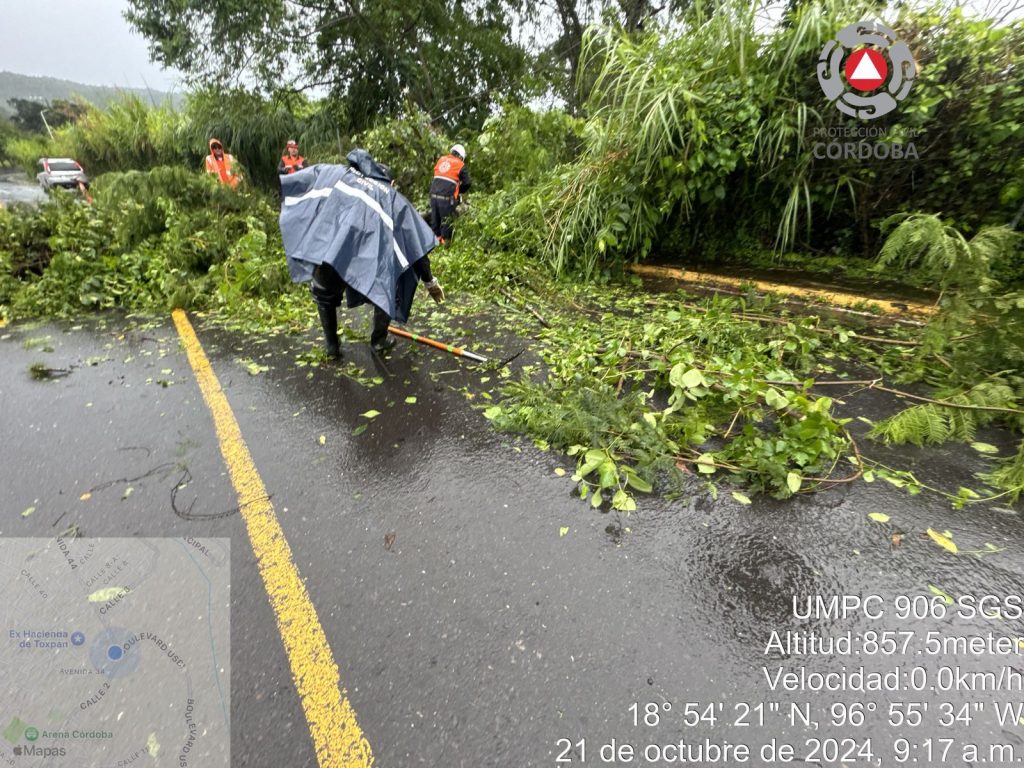 Jorge Tress Martínez, titular de la Unidad Municipal de Protección Civil, informó que en las últimas horas las lluvias se han intensificado en el centro del estado, y en Córdoba se han registrado caídas de árboles a orillas de las carreteras. “Hemos tenido dos incidentes por caída de árboles: uno en el bulevar de la USBI, que ya fue atendido por personal de Protección Civil y la Jefatura de Parques y Jardines; y otro en la barranca de San Rafael Calería, que comunica con La Luz Palotal, el cual también está siendo atendido por personal de Protección Civil y la Policía Estatal”, señaló.