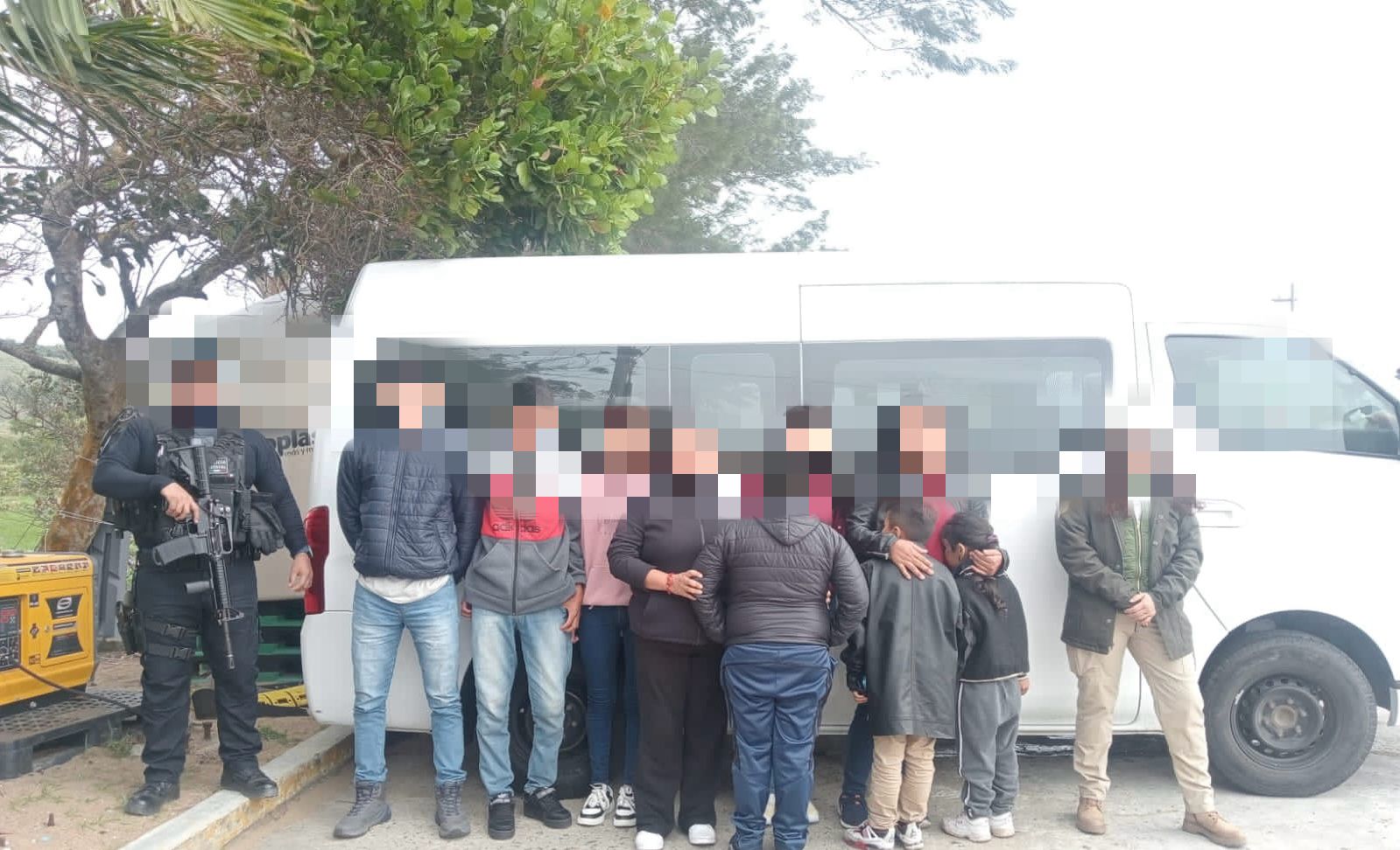 Inmediatamente, le marcaron el alto a Benito “N” y Luis Mario “N”, quienes trasladaban a 65 personas de diferentes nacionalidades. Ambos sujetos fueron detenidos en el lugar.