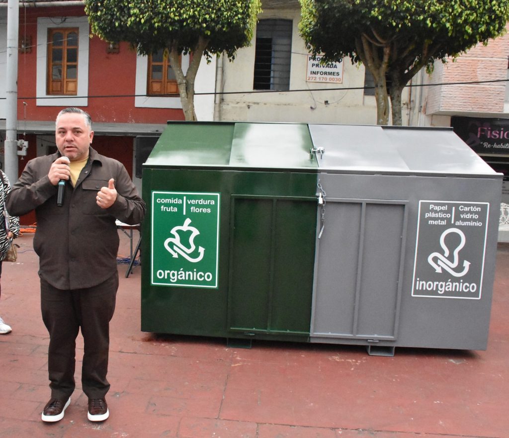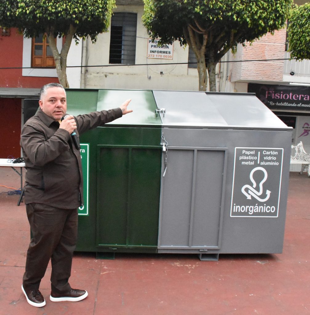El alcalde explicó que este contenedor cuenta con compartimentos independientes, puertas con candado y un sistema que facilita su vaciado, con el objetivo de mantener el orden, evitar tiraderos clandestinos y promover la correcta separación de los desechos.