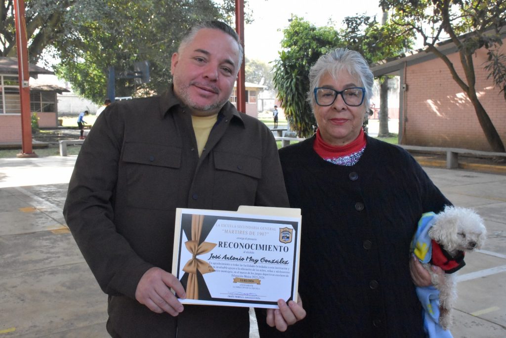 Finalmente, autoridades educativas, encabezadas por la directora Marisa González Peña, entregaron un reconocimiento al presidente municipal José Antonio May González, en agradecimiento por su invaluable apoyo a la educación y por las facilidades brindadas para la realización de este importante evento, en el marco de los Juegos Deportivos Escolares de Educación Básica 2025–2026.