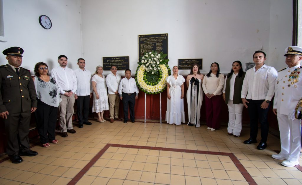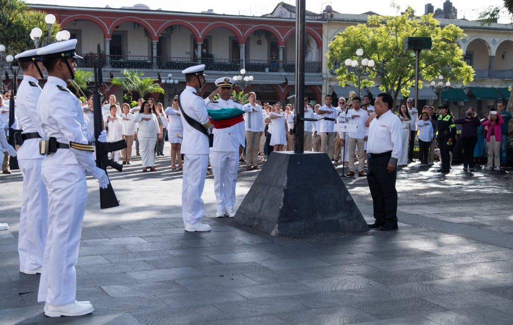 Posterior al izamiento de la bandera nacional realizada por el alcalde Juan Martínez Flores, la comitiva se trasladó a la esquina de la avenida 1 y calle 1 en el Portal de Zevallos y enseguida al vestíbulo de la escuela primaria Francisco I. Madero donde montaron guardia de honor y colocaron una ofrenda floral; el cuerpo edilicio y directores de áreas y jefes de departamento presenciaron el desfile frente a palacio municipal.