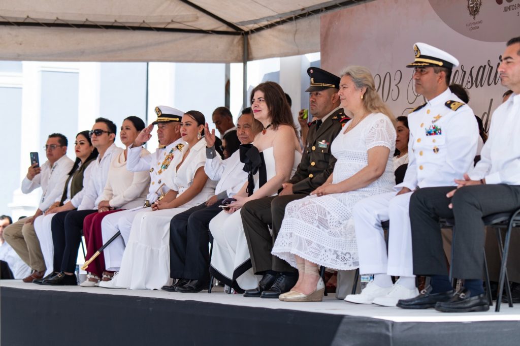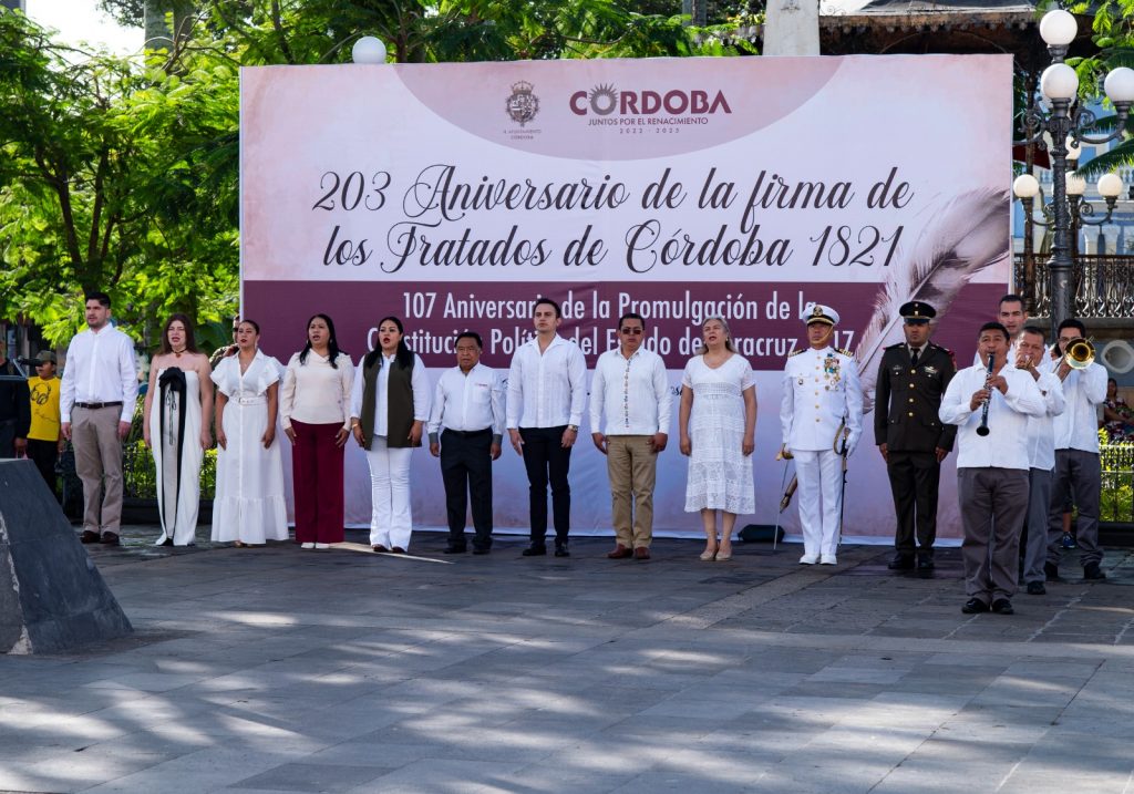 H. Córdoba Ver. 24 de agosto de 2024. – El presidente municipal Juan Martínez Flores y su cabildo encabezaron la ceremonia cívica y desfile para conmemorar el 203 aniversario de la Firma de los Tratados de Córdoba del 24 de agosto de 1821. Cadetes de la Heroica Escuela Naval Militar engalanaron la celebración de la firma del reconocimiento como un estado soberano y la Independencia de México.
