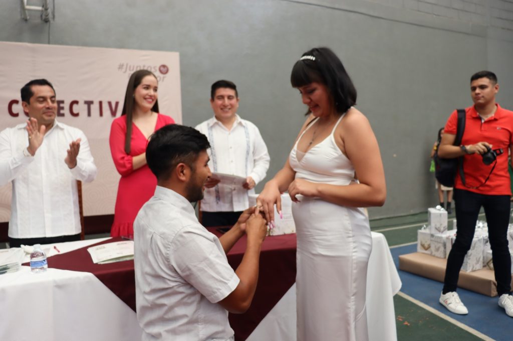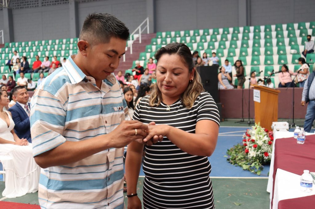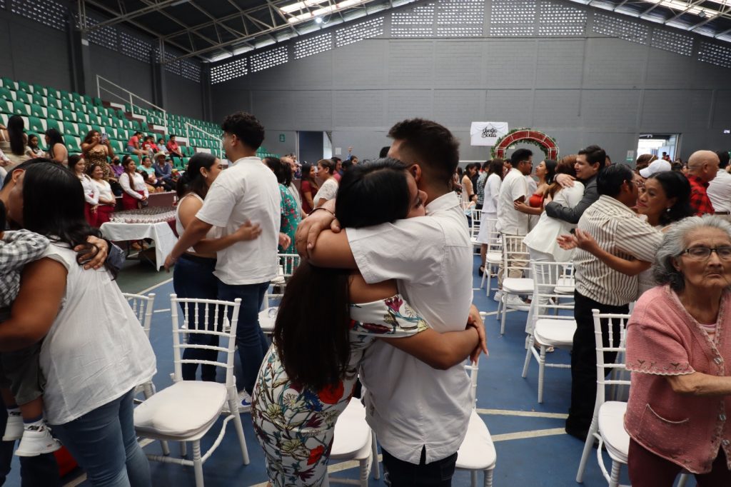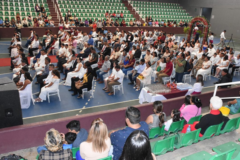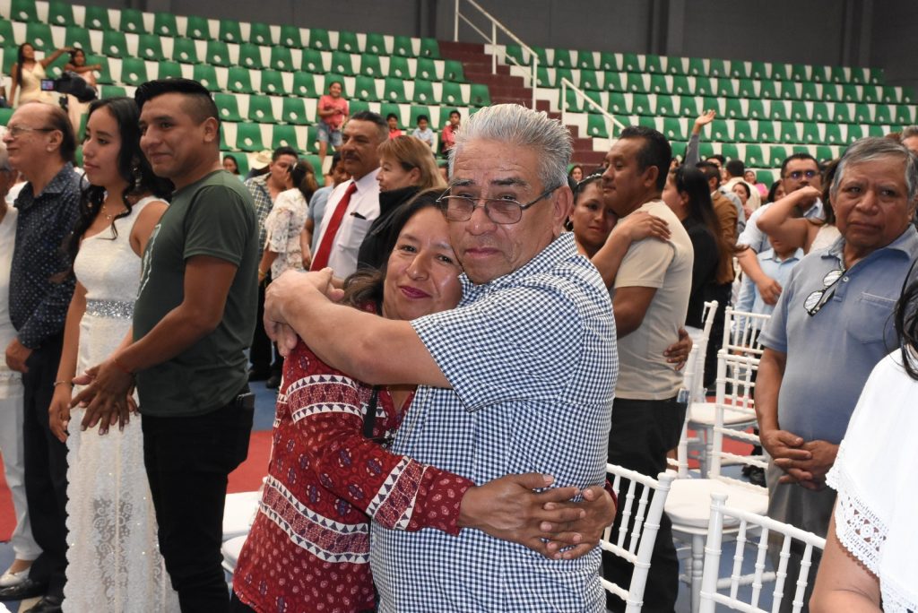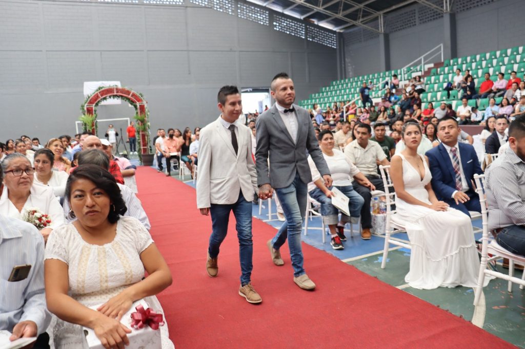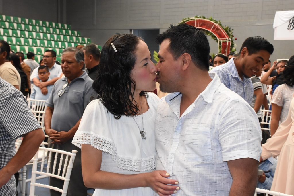 El auditorio de la unidad deportiva Eliezer Morales fue el escenario para que 92 parejas se dieran el “sí”, jóvenes, adultos mayores de la tercera edad y también parejas del mismo sexo nutrieron esta ceremonia, misma que estuvo llena de alegría, amor y sorpresas pues algunas parejas sellaron su amor con el anillo de compromiso.