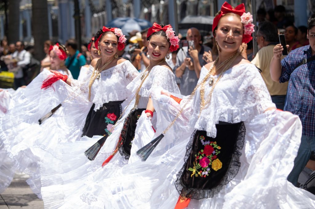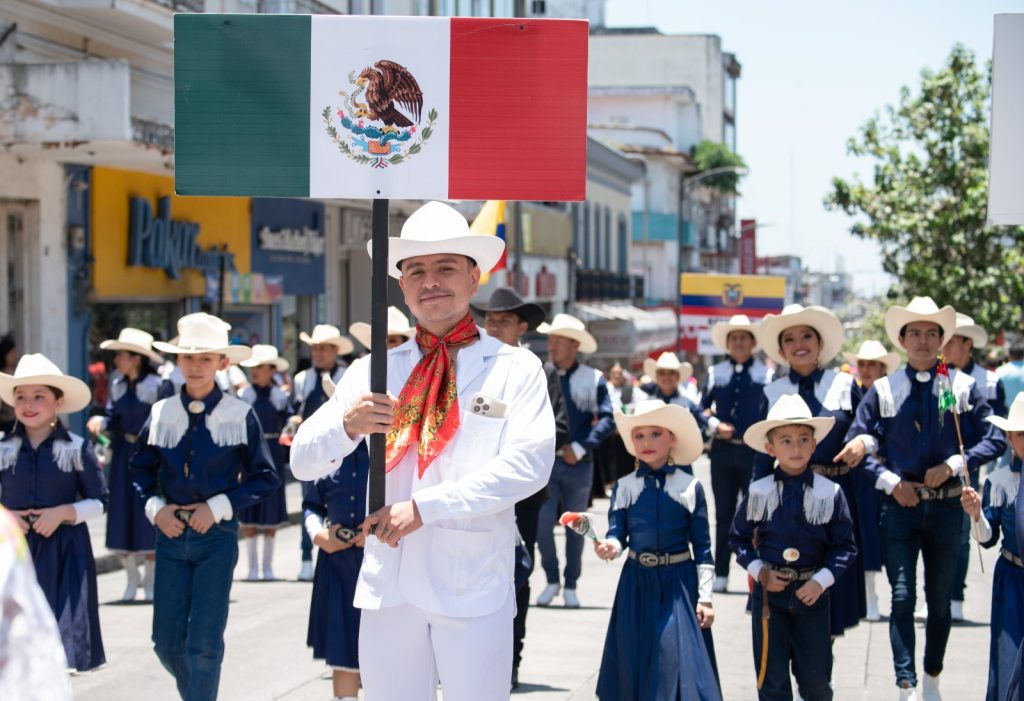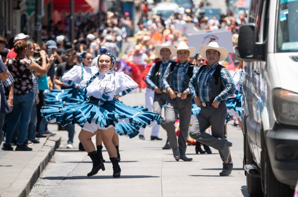 En este desfile también se hizo presente el Puerto de Veracruz con grupo Guapana, quienes pusieron el ánimo con sus bailes, otros presentaron La Bamba, La Bruja y los participantes no dejaron de lado los zapateados de otros estados como Jalisco y las polcas norteñas.