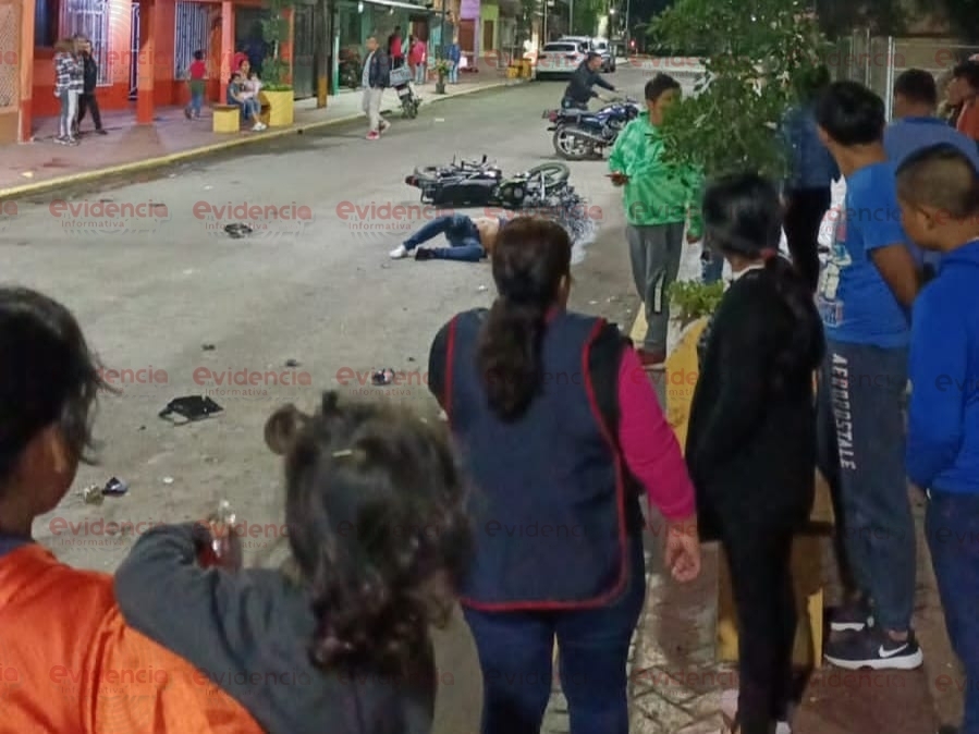 El hecho se registró a la altura de la clínica del IMSS, luego de que el motociclista perdiera el control de la unidad derrapando y golpeándose el cráneo contra una jardinera, muriendo al instante.