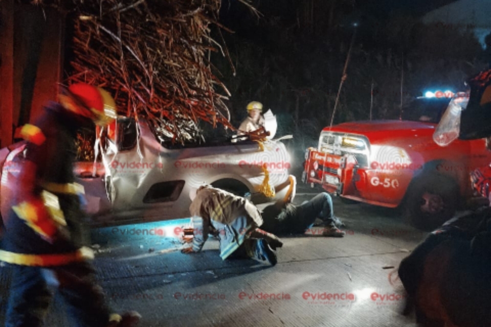 En el aparatoso accidente se vio involucrado un camión cañero y el conductor de una camioneta tornado siendo este último el cuál quedó abajo de la pesada unidad.