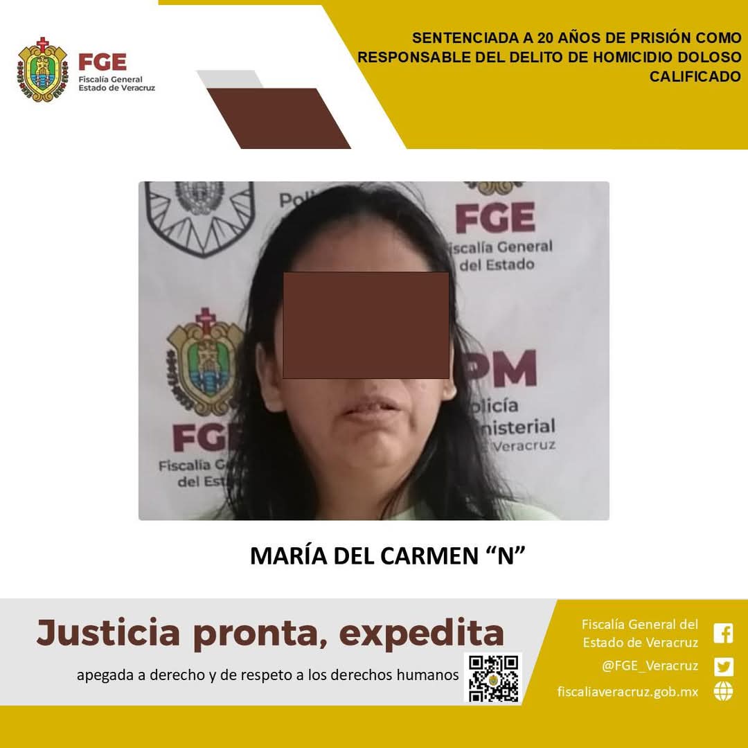 Tuxpan, Ver., a 27 de noviembre del 2024.-La Fiscalía Regional Tuxpan logró sentencia condenatoria de 20 años de prisión en contra de María del Carmen “N”, como responsable del delito de homicidio doloso calificado, cometido en agravio de la víctima identificada con las iniciales E.H.T.