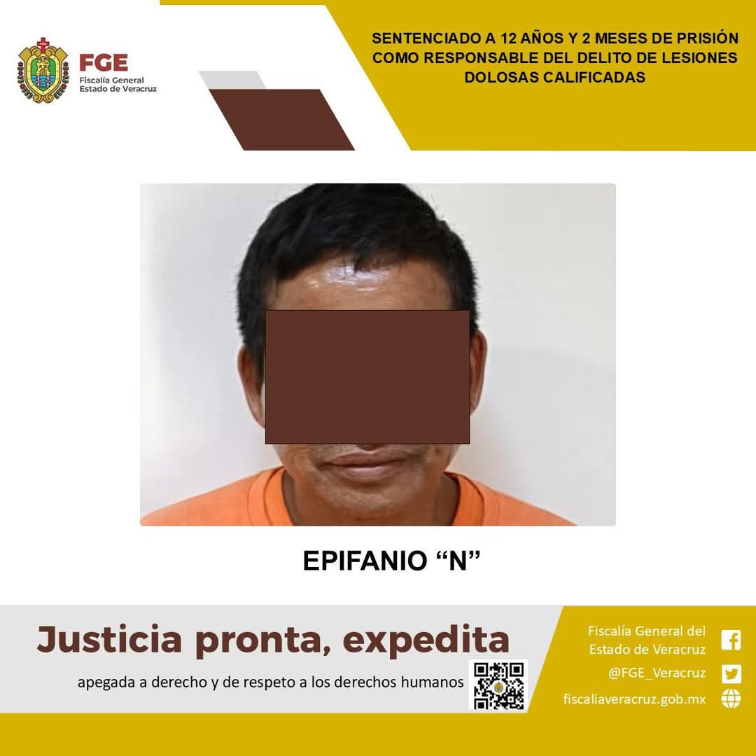 Tuxpan, Ver., 1 de abril de 2025.-La Fiscalía General del Estado, a través de la Fiscalía Regional Tuxpan logró sentencia condenatoria de 12 años y 2 meses de prisión en contra de Epifanio “N” como responsable del delito de lesiones dolosas calificadas, cometido en agravio de la víctima identificada con las iniciales D.H.H.