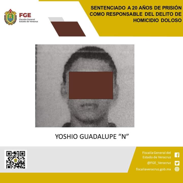 Coatzacoalcos, Ver.- Un juez de control de este distrito judicial emitió sentencia condenatoria de 20 años de prisión en contra de Yoshio Guadalupe “N” como responsable del delito de homicidio doloso en agravio de la víctima identificada con las iniciales F.J.C.
