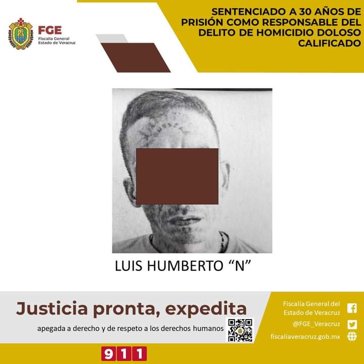 Acayucan, Ver., 27 de septiembre de 2023.- La Fiscalía Regional Coatzacoalcos logró sentencia condenatoria de 30 años de prisión en contra de Luis Humberto “N” como responsable del delito de homicidio doloso calificado en agravio de la víctima identificada con las iniciales M.A.M.L.