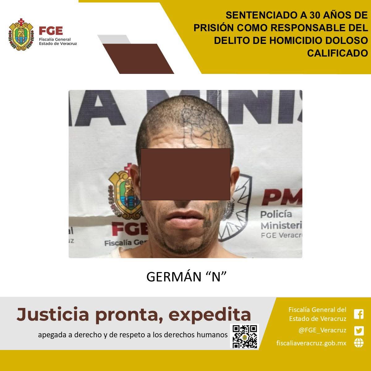 Playa Vicente, Ver., 11 de septiembre de 2025.- La Fiscalía Regional Cosamaloapan logró sentencia condenatoria de 30 años de prisión en contra de Germán “N” como responsable del delito de homicidio doloso calificado en agravio de la víctima A.H.G.