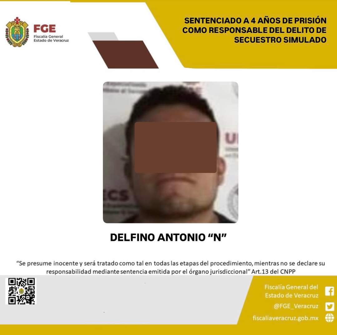 Córdoba, Ver., 16 de noviembre de 2024.-La Fiscalía General del Estado, a través de la Unidad Especializada en Combate al Secuestro, logró sentencia condenatoria de 4 años de prisión en contra de Delfino Antonio “N”, como responsable del delito de secuestro simulado, cometido en agravio de la víctima identificada con las iniciales A.P.P.