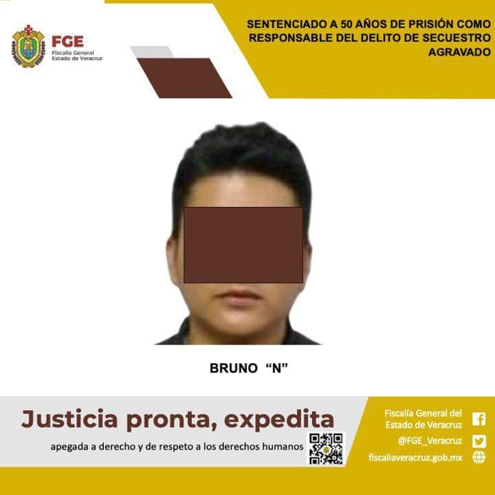 Xalapa, Ver., a 8 de noviembre del 2024.-La Fiscalía General del Estado, a través de la Unidad Especializada en Combate al Secuestro, logró sentencia condenatoria de 50 años de prisión en contra de Bruno “N”, como responsable del delito de secuestro agravado, cometido en agravio de la víctima identificada con las iniciales O.V.A.