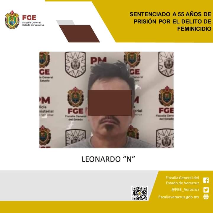 Las Choapas, Ver.- La Fiscalía Especializada en Investigación de Delitos de Violencia Contra la Familia, Mujeres, Niñas y Niños y de Trata de Personas logró sentencia condenatoria de 55 años de prisión en contra de Leonardo “N” como responsable del delito de feminicidio cometido en agravio de la víctima M.F.F.