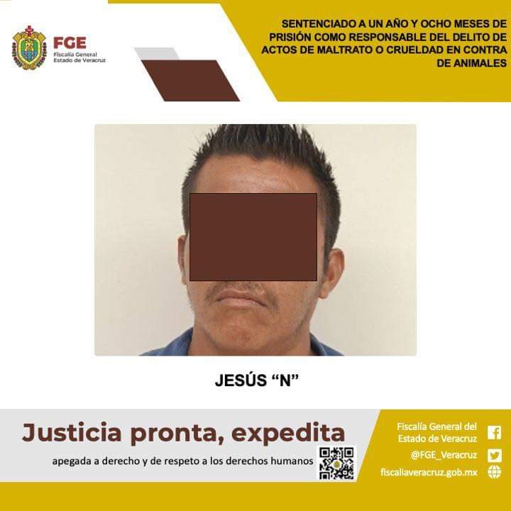 Tuxpan, Ver., a 5 de noviembre del 2024.-La Fiscalía General del Estado, a través de la Fiscalía Regional Tuxpan, logró sentencia condenatoria de un año y ocho meses de prisión en contra de Jesús “N”, como responsable del delito de actos de maltrato o crueldad en contra de animales, cometido en agravio de una canina de raza pastor belga.