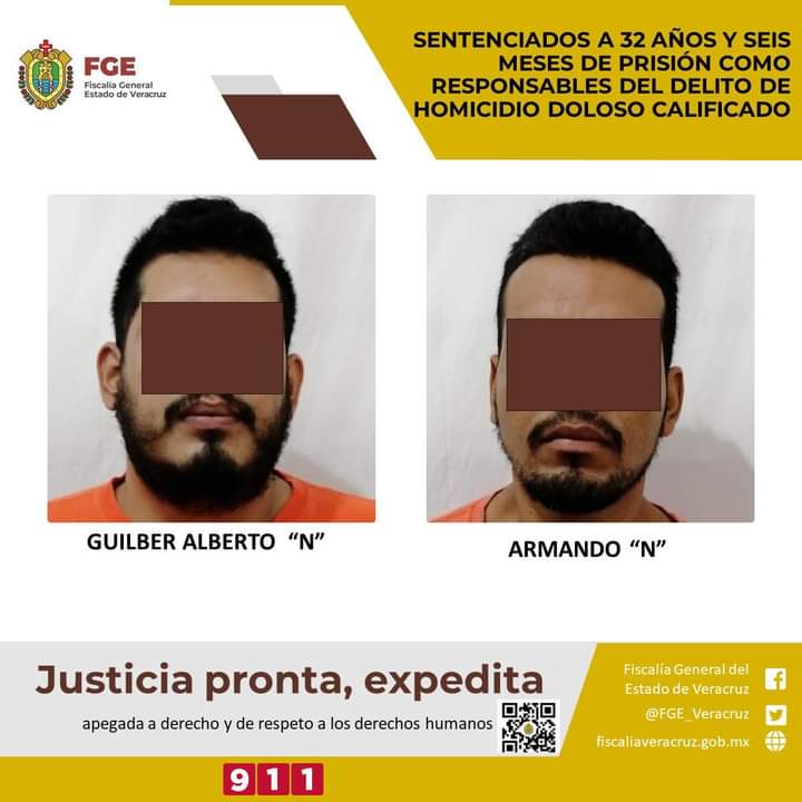 Isla Ver., 12 de junio 2024.- La Fiscalía Regional Cosamaloapan logró sentencia condenatoria de 32 años y seis meses de prisión en contra de Armando “N” y Guilber Alberto “N” como responsables del delito de homicidio doloso calificado en agravio de las víctimas identificadas con las iniciales I.A.T.A. y R.M.S.