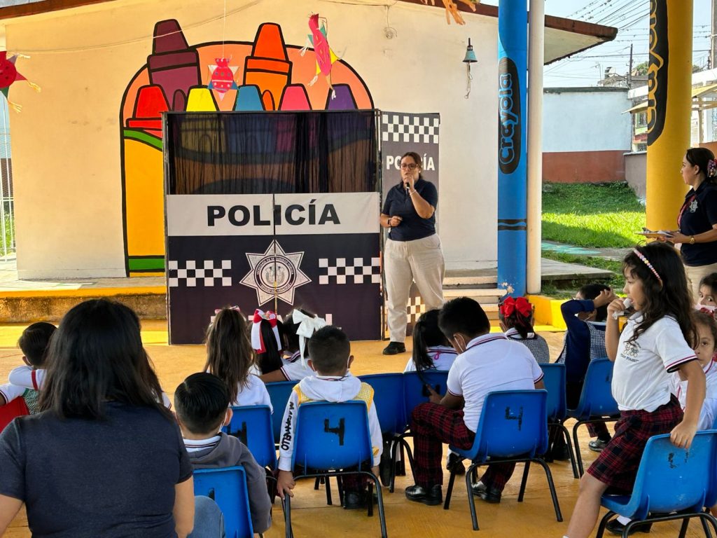 En el Jardín de Niños Jean Piaget, elementos de la SSP realizaron una función de teatro guiñol para enseñar de forma didáctica a las niñas y niños sobre sus derechos, el uso responsable de los números de emergencia y cómo identificar a personas de confianza en situaciones de riesgo. Paralelamente, madres, padres y tutores recibieron orientación por parte del C4 sobre el uso adecuado de los números de emergencia y de la aplicación Mujer Alerta. La Jefatura Municipal de Salud brindó información sobre los servicios gratuitos disponibles, y con apoyo de Seguridad Pública se conformó una red vecinal para fortalecer la comunicación y la reacción comunitaria ante escenarios de riesgo.